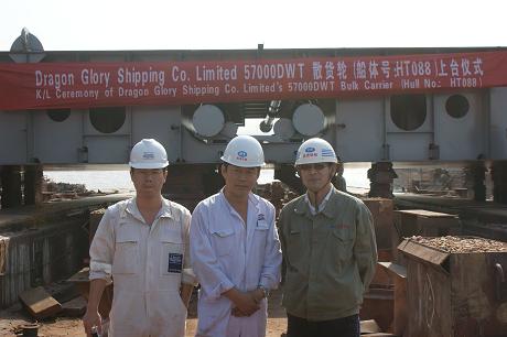 我司為大新船東建造的57000DWT散貨輪(船體號:HT088)于2011年10月15日下午2:00在我司舉行了上臺儀式,該船入LR船級社。潘學(xué)軍副總及船東船檢代表參加了該儀式。